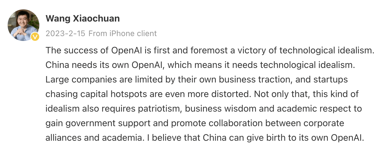 The key difference among them lies in speed: Zhipu AI was founded in 2019, while both Moonshot and Baichuan Intelligence emerged in March 2023. But Moonshot is led by Yang Zhilin, a young AI researcher celebrated for his groundbreaking work. Baichuan, in contrast, is helmed by Wang Xiaochuan, once hailed as a prodigy and even called a genius in his youth. However, Wangβs career followed a different path β he spent 20 years building Sogou, a search engine that, despite being acquired by Tencent, never achieved tech giant status. According to some Chinese media, because of that his mother considers him a disappointment.