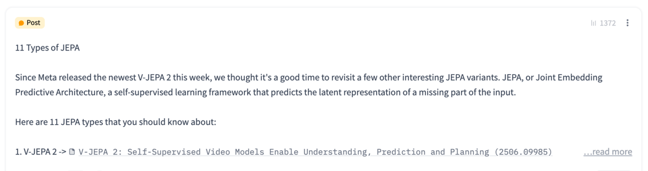 Since researchers from Meta just introduced V-JEPA 2, a self-supervised world model trained on 62 hours of robot data from the Droid dataset and large-scale natural video, We decided to share two collections of different JEPAs that we put together recently. Enjoy!