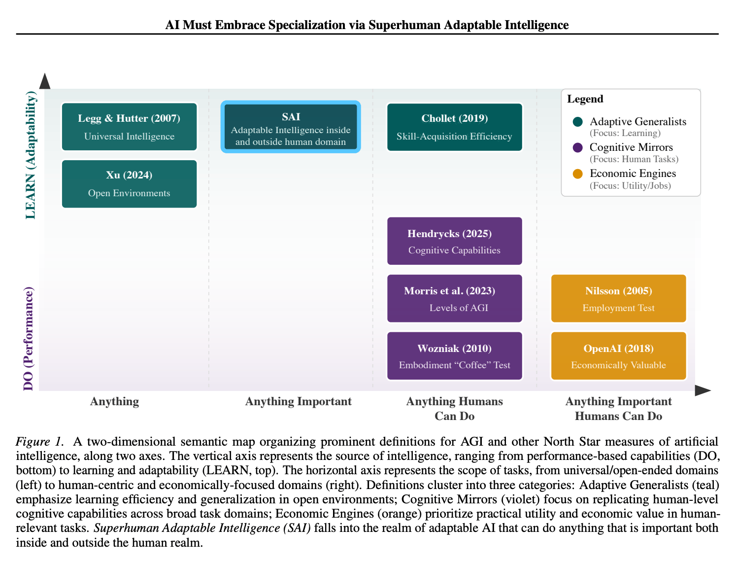To be fair, this looks like a rhetorical pivot rather than a technical conversion. The core program is familiar, but the framing has moved from autonomy, to advancement, to adaptability. My read is that, through this new term, LeCun and coauthors are trying to show that the field is drifting away from one grand, mystical notion of generality and toward layered systems built around specialization, adaptation, and composition.