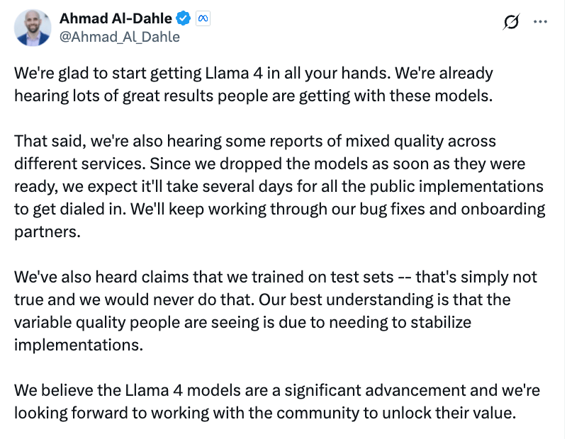 Several factors may have contributed to Llama 4's underwhelming reception: